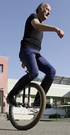 In den letzten Wochen hatte ich auf dem Einrad immer Kautschukstiefel an gehabt. Heute entschied ich mich zum ersten Mal seit Ende April mal wieder für Vinyl. Dazu zog ich die Fritz Thiedemann an.